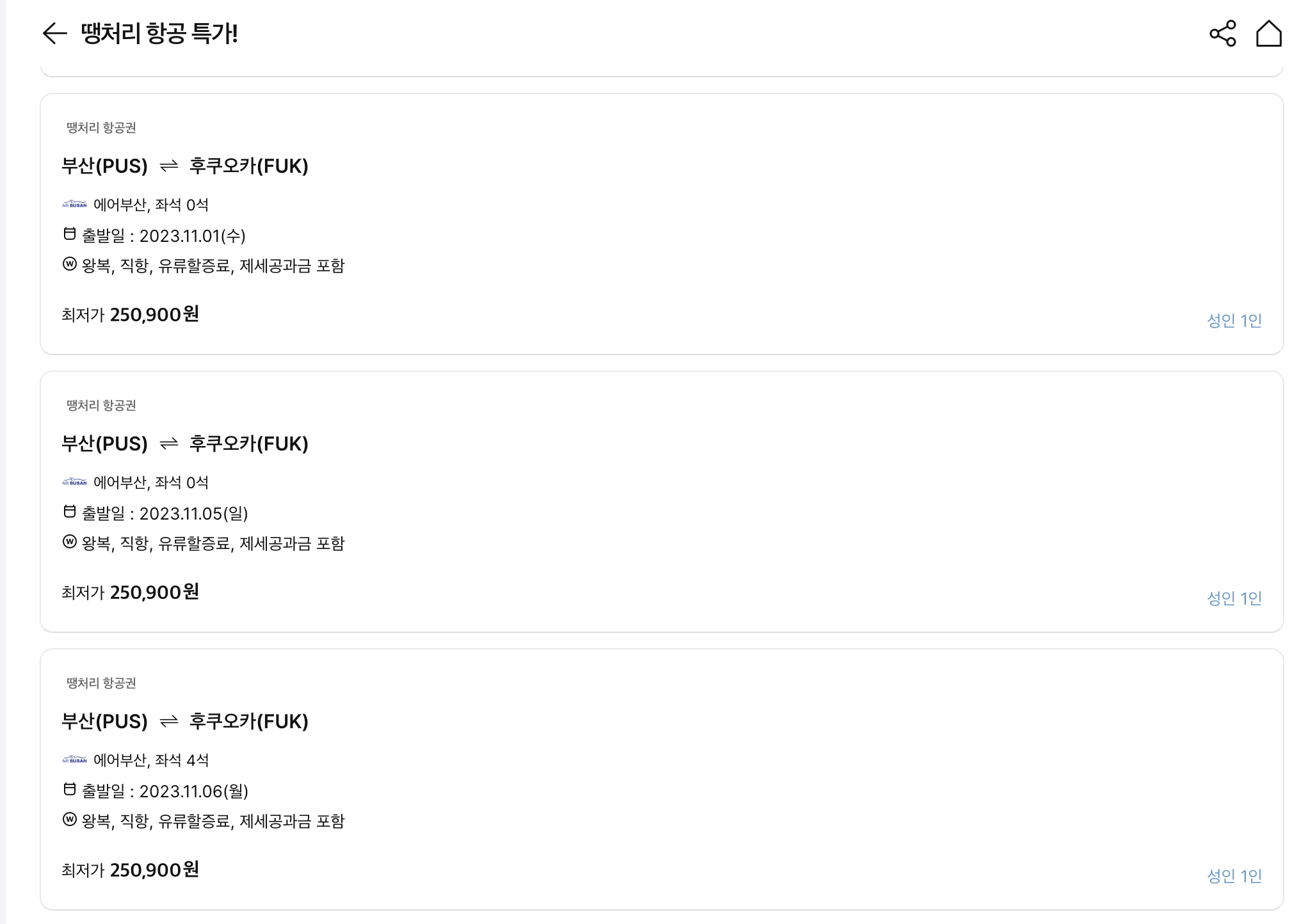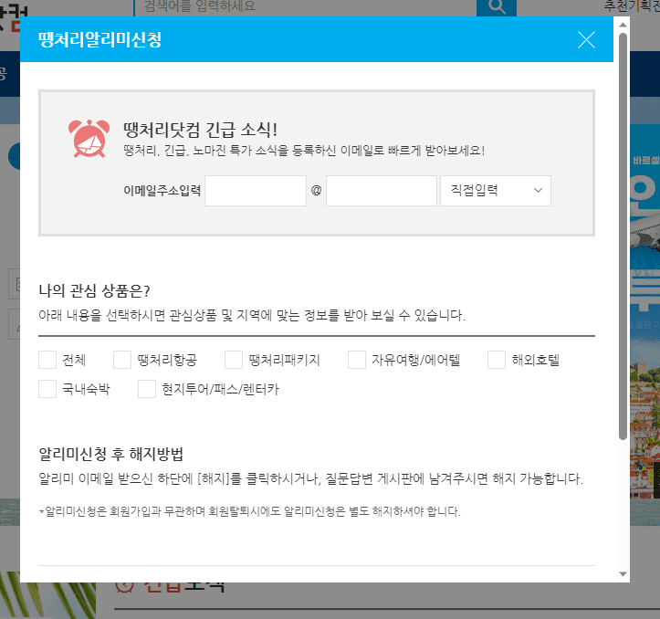 땡처리항공권 실시간 알림